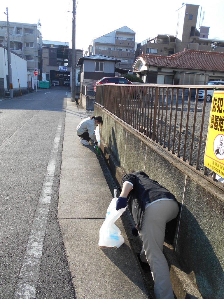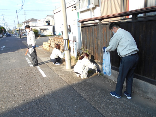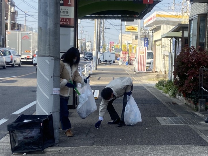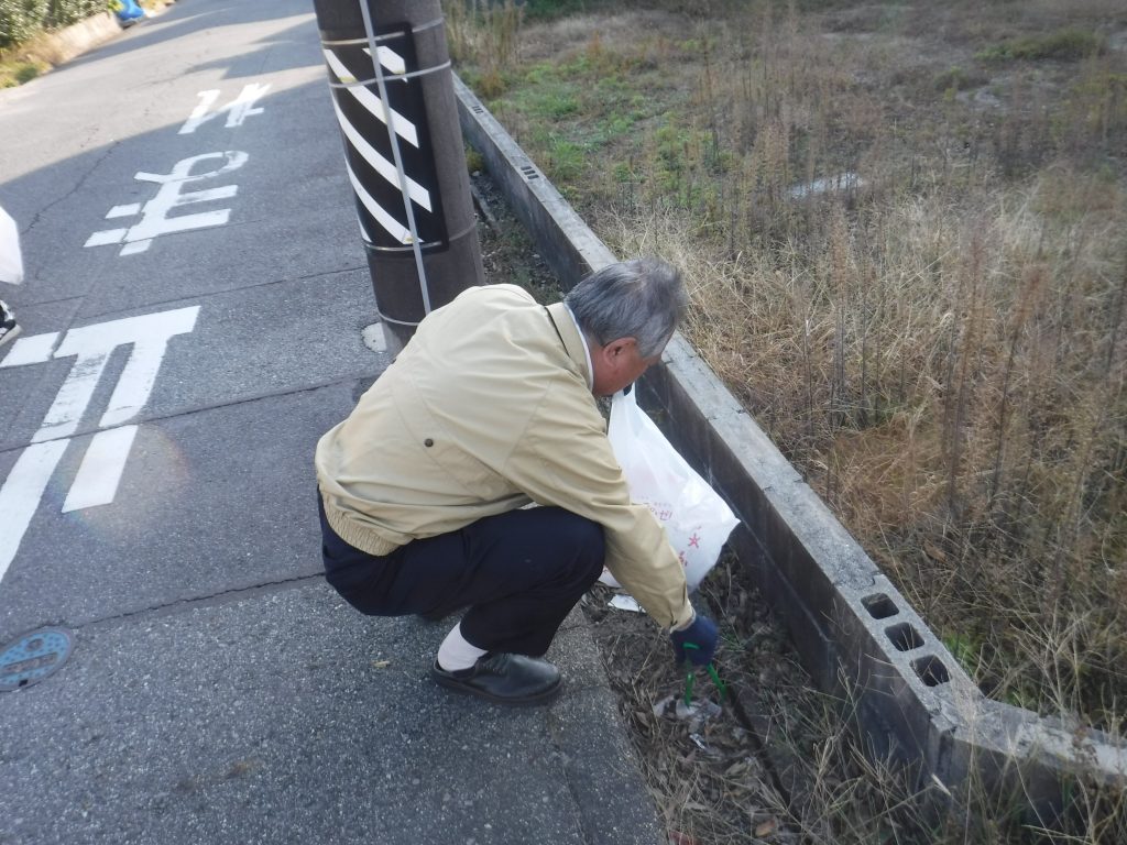 歩行者や車両の往来に注意しながら、道路脇の落ち葉や雑草、空き缶、たばこの吸い殻などを拾いました。短時間の活動でしたが、周辺の環境が改善され、達成感のある清掃となりました。